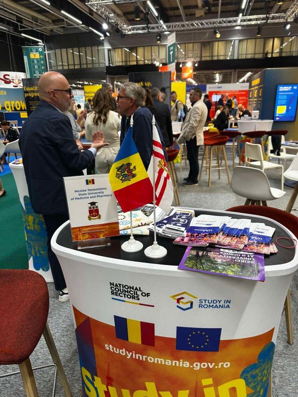 The universities of our country presented themselves under the Romanian stand (Study in Romania), organized by the National Council of Rectors of Romania (President Sorin Cimpeanu, present at the event) in collaboration with the Council of Rectors of the Republic of Moldova (President Emil Ceban). The initiative belongs to the National ERASMUS+ Office in Moldova and demonstrates the joint commitment to the integration of higher education in the European space.
